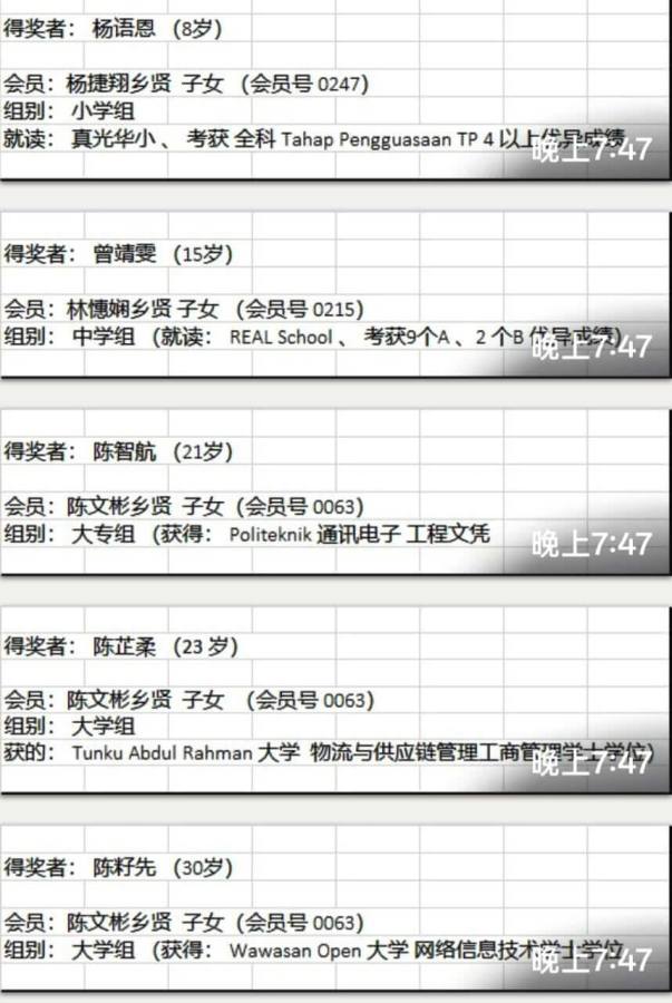7) 颁发2026年会员子女奖励金