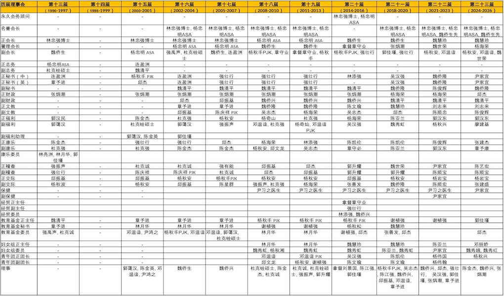 理事会-雪隆龙岩会馆 第23届 (2024-2026) 理事团体 会长 魏慧玲 署理会长 杨海荣 副会长 魏世荣 副会长 邓温谙 副会长 杨秋安 秘书长/保健 尹家宜 副秘书 魏侨隆 财政 邱杰 副财政 魏清平 正稽查 陈艺宏 副稽查 陈顺宝 正文教 刘志来 副文教 陈俊辉 正福利 郭汉东 副福利 廖建基 正康乐 张建杰 副康乐 章予康 正交际 杨岩宝 副交际 张建盛 妇女组主任 邓丽娇 委员 魏秀娥 委员 魏秀红 青年团主任 杨秋兴 教育组主任 郭佳瑾 理事 陈金杰 理事 魏侨兴 理事 张炳潮 第1-12届理事名单 点击下载 第13-23届理事名单 点击下载
